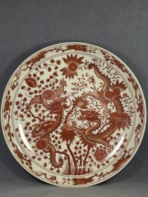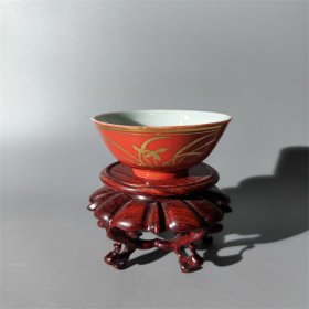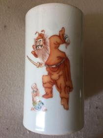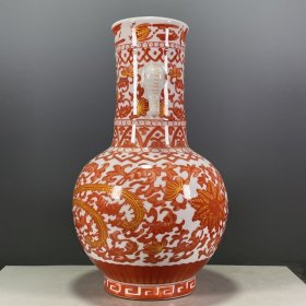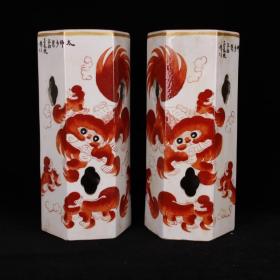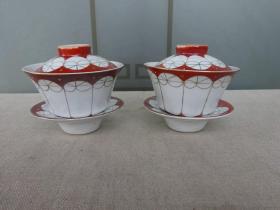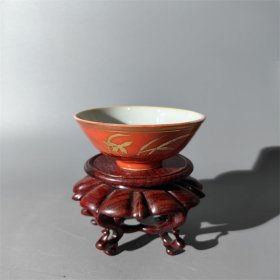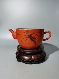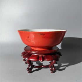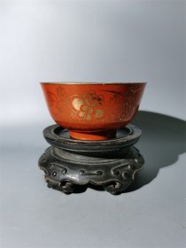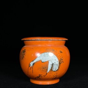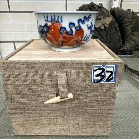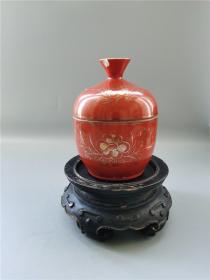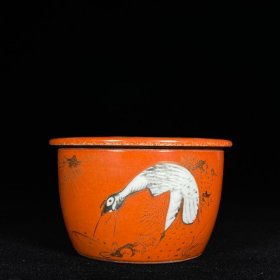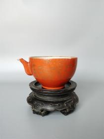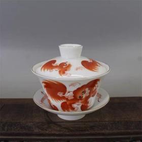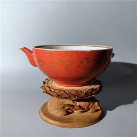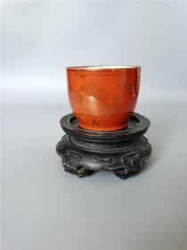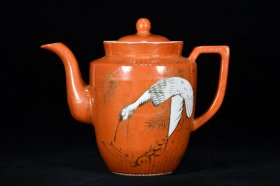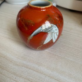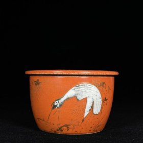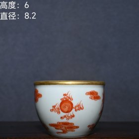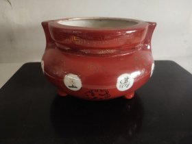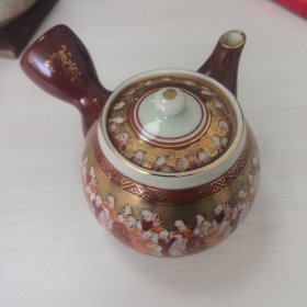 日本购回:日本九谷烧、九谷描金赤绘 《百寿老人图》 细密赤绘 重金矾红百仙图( 老九谷,内有使用痕迹,表面有脱金划痕磨损等岁月痕迹)满水容量500毫升。