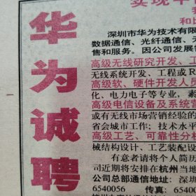 钱江晚报1998年7月29日16版齐全 中萃食品有限公司雪碧广告、香港超级巨匪张子强落网记、上海深圳股市行情、诺基亚、阿尔卡特广告、青春医院受到严肃处理,华为招聘广告,