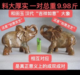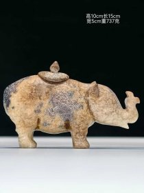 183_♦【玉象卣】高古玉和田玉阴刻回字纹塑像象卣。 图中象卣做工精湛,刻工细腻流畅,正反面双工,古坨痕明显,通体满工,整体展现效果极佳,表面见不同程度沁色,体量适中,品相完整,成色如图。