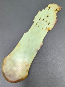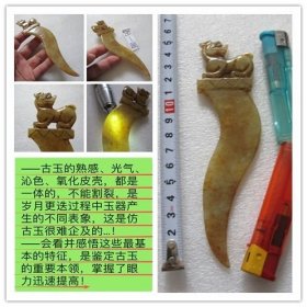 古玉兵器,和田玉,玉件 规格:15.4*7.6*0.6厘米,重 240克。 沁色自然,刀功老道,皮壳包浆厚重,雕刻生动,线条流畅,品相完美!