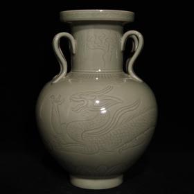 宋越窑青瓷龙凤纹瓶