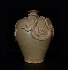 越窑青釉捏龙纹梅瓶