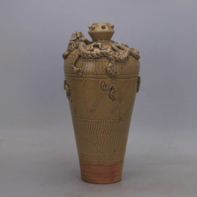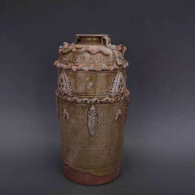西晋越窑手工雕刻花篮瓶