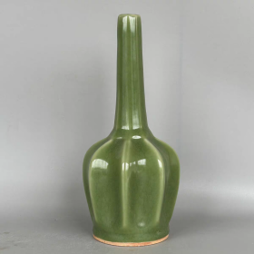 越窑绿釉八方长颈瓶