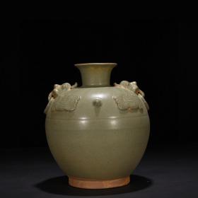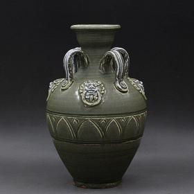 越窑青釉神兽四系瓶