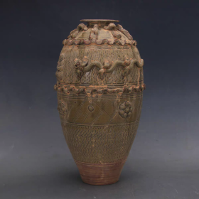 宋代越窑浮雕葡萄梅瓶