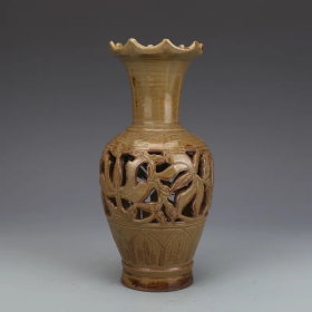 珍藏宋代越窑雕刻花卉瓶