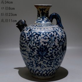 大明嘉靖年制手绘缠枝莲纹鸡首壶瓷器酒壶明清陶瓷旧货老货老物件