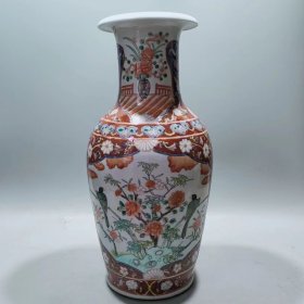 大清康熙年制粉彩花鸟翻口瓶手绘景德镇瓷器陶瓷摆件装饰古玩收藏