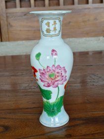 定新陶瓷《年年有余》手绘鎏金题诗,高约20.5/8.5厘米,完整无损,保老保真。