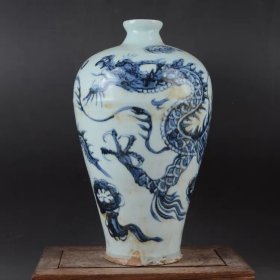 元代手绘青花龙纹梅瓶花瓶古玩古董老货收藏居家精品装饰陶瓷