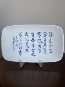 青花赏盘陶瓷盘子瓷盘画方盘手绘青花诗词文字长方形老旧当代瓷器摆件
