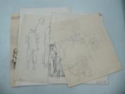 画家、中国戏剧家协会会员、总政歌舞团舞美设计 周国华 60年代手稿素描画 5幅 尺寸不一 20/14厘米b041113
