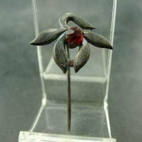 清代民国老银饰品玉兰花镶仿红宝石精工银发簪保真保老古董古玩杂项收藏