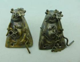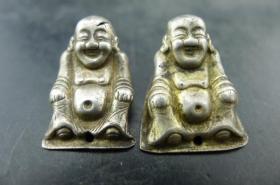 盛丰和款清代民国老银笑佛布袋和尚弥勒佛一对老银饰品古董古玩杂项收藏 高:22mm 宽:16.5mm 共重:4g