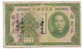 广东省银行银毫券孙像绿色伍圆纸币老票子四大行保真保老古董古玩杂项收藏