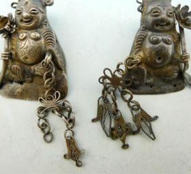 古玩杂项收藏仿古铜器白铜鎏银书房居家摆件精品工艺品双手带财神