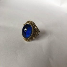 古玩杂项收藏 清朝乾隆年制蓝宝石银戒指扳指 特价