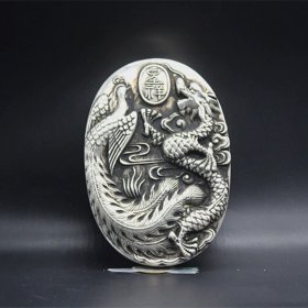 古玩杂项收藏文房四宝砚台白铜鎏银龙凤呈祥砚台