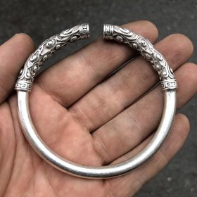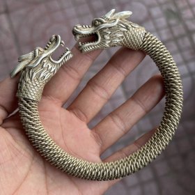 文玩杂项银龙扭丝手镯银器祥龙手镯男款老银龙手环