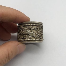 老银铺不做了低价处理库存精品古玩杂项收藏 银龙凤扳指戒指 龙凤呈祥扳指 可转动