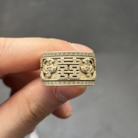 回流老物双喜戒指民间收藏品男士白苗银指环古玩杂项复古戒指