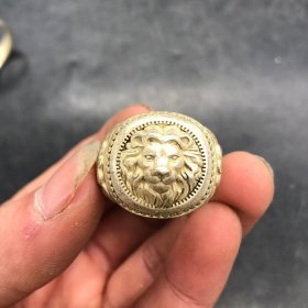 古玩杂项收藏大清乾隆年制狮子头戒指银戒指特价