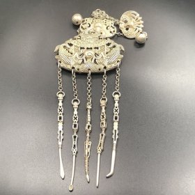 古玩古董杂项收藏清朝镂空龙凤银锁压襟锁