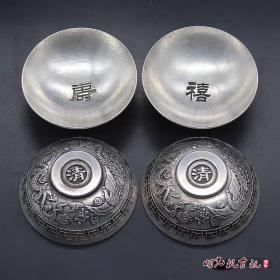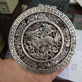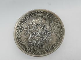 古玩铜器古董杂项收藏苗银藏银白铜龙凤戏珠碟子小碗笔洗镇宅招财