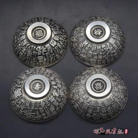 古玩杂项收藏仿古仿银福禄寿喜碗铜碗一套工艺品摆件