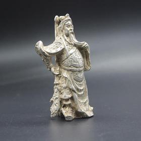 古玩杂项收藏白铜鎏银关公武财神摆件关公摆件仿古摆件