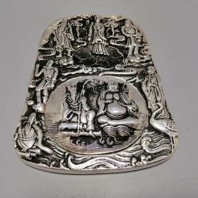 古玩杂项收藏仿古文房四宝砚台白铜鎏银砚台八仙过海砚台