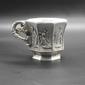 古玩杂项收藏仿古摆件白铜鎏银八仙酒杯酒盅工艺品摆件