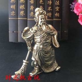 古玩杂项收藏复古铜器白铜鎏银武财神关公耍大刀摆件手把玩件