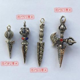 古玩杂项收藏仿古金刚杵仿银摆件四枚一套钥匙挂坠实物拍摄包邮