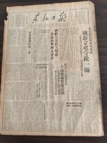 《东北日报》【高岗主席在文代会上讲话,号召全体文艺工作者迎接文化建设的高潮;政务院第十一次会议通过新疆省政府名单,决定所属各机关人事,决定筹设中国人民大学;成都外围解放(简阳、井研、仁寿)三城】