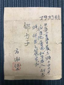 1949年邵力子亲笔签名 附高潮记录“三十八年二月五日晨十一时于中大牙症医院会见<和平老人>邵老时,邵老之签字”,系著名翻译家高叔眉旧藏,纸本软片,8.3*10.4cm