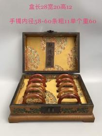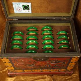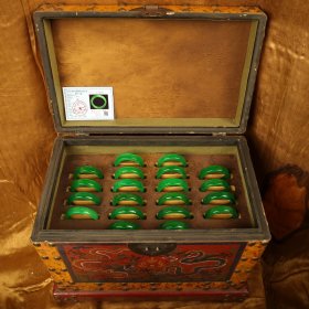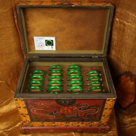 旧藏收极品罕见高冰种黄翡翡翠手镯一箱 品相保存完好 配老漆器箱子一个 箱子52X40X33厘米 带证书 手镯内径6厘米 左右 单只重70克左右 一箱
