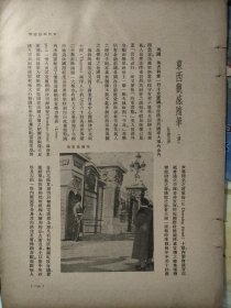 东西感观随笔(续),作者阮维扬,1938年9月杂志的一篇欧洲游记散文。介绍作者在英国,法国,罗马,瑞士,苏俄,维也纳,柏林等地游走的见闻。有很多图片,维也纳之美术建筑,柏林之交通工具,罗马安琪儿大教堂等。五张纸正反面十面。16开大小。阮维扬,浙江慈溪人。毕业于上海沪江大学经济系。创立上海康元制罐厂。曾任香港商会副会长、宁绍同乡会主席。1947年苏浙同乡会长。1987年担任香港宁波同乡会监事长