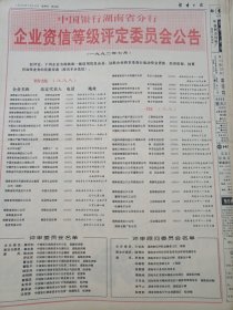中国银行湖南省分行企业资信等级评定委员会公告(1992年7月)