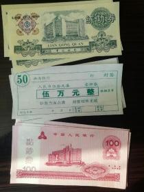 老版银行练功券+封签合拍——含中国人民银行练功券7张,中国银行练功券3张,渤海银行封签3枚