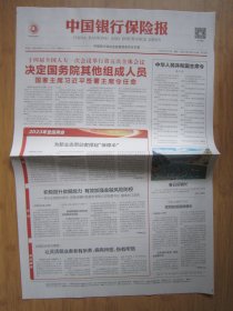 245、中国银行保险报 2023.3.14日 十四届全国人大一次会议闭幕 2开8版彩印