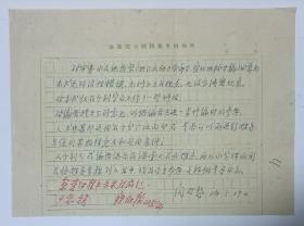 1964年学者、编审闵心恕用地质图书编辑室专用稿纸手写信札1页,内容关于…对审查水文地质学(地下水运动部分,宣传地校等编)的意见,本书无政治性错误,无修正主义观点,也没有泄密现象…事宜。
