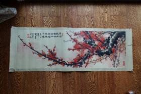 中国美术家协会理事◆王成喜《1982年绘●红梅图》锦绫原装旧裱老立轴◆当代河南省籍名人旧字画手绘花卉画◆