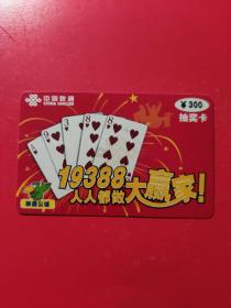 各类电话充值卡:中国联通 联通公话 19388人人都做大赢家 抽奖卡 面值300元 1张售 盒九0012