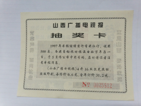 山西广播电视报1992抽奖卡