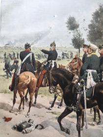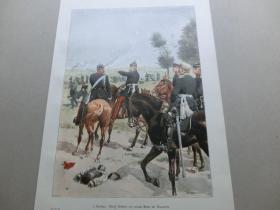 【百元包邮】1897年,彩色平版印刷画《威廉国王和他的军队》(König Wilhelm mit seinem Stabe bei Gravelotte),纸张尺寸约41×28厘米。