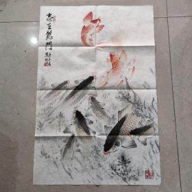 H 143 保真 江苏泰州著名画家 沈黎明 内容好 鱼龙游 画的好,找人请他画300元也不会画的 6845厘米 ,具体品相如图 不议价,谢绝还价