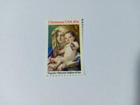 美国邮票 套色大移位 20c 1982年圣诞节-节日问候 圣诞邮票 提埃波罗绘画 国家艺术馆藏画 乔瓦尼·巴蒂斯塔·提埃波罗1696–1770,意大利威尼斯画派画家。他善于绘图和运用色彩,在作品中融合了利用光线制造运动感的巴洛克风格以及洛可可式的欢乐气氛。提埃波罗在威尼斯、维尔斯堡及马德里的壁画和顶棚画是其杰出的作品。他对技巧的掌握也体现在其铅笔画、淡水彩画及小幅油画中