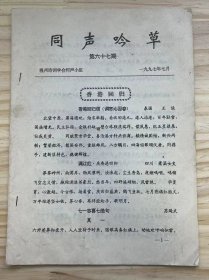 《同声吟草 第六十七期》七一志喜七绝句、荧幕看香港交接仪式、丁丑仲夏之望伤叙例作俚句承在席诸吟翁郢正玉和、沁园春·白云深处、一剪梅·东阳诗会、西门颂、过观音文化城.....
